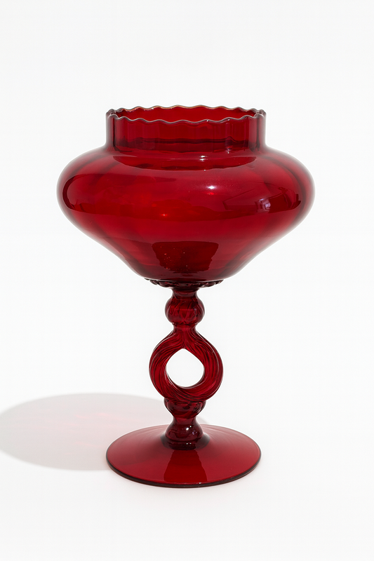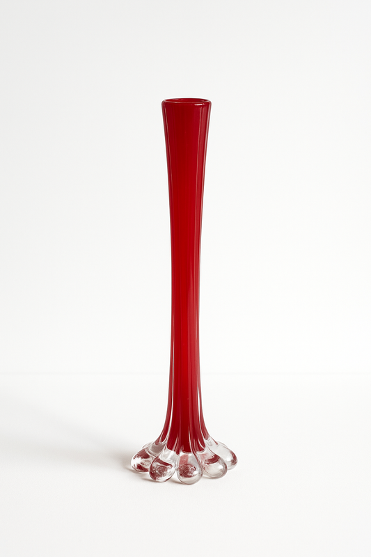 Vase amphore en verre soufflé Rouge orangé et blanc