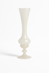 Ce vase en verre opalin rose poudré séduit par sa silhouette élancée et sculpturale. Son pied travaillé, formé de courbes superposées, met en valeur une ligne gracieuse et un col évasé. Sa finition satinée diffuse la lumière avec douceur, offrant un charme à la fois délicat et raffiné. Idéal pour accueillir un bouquet ou être présenté seul comme pièce décorative élégante.